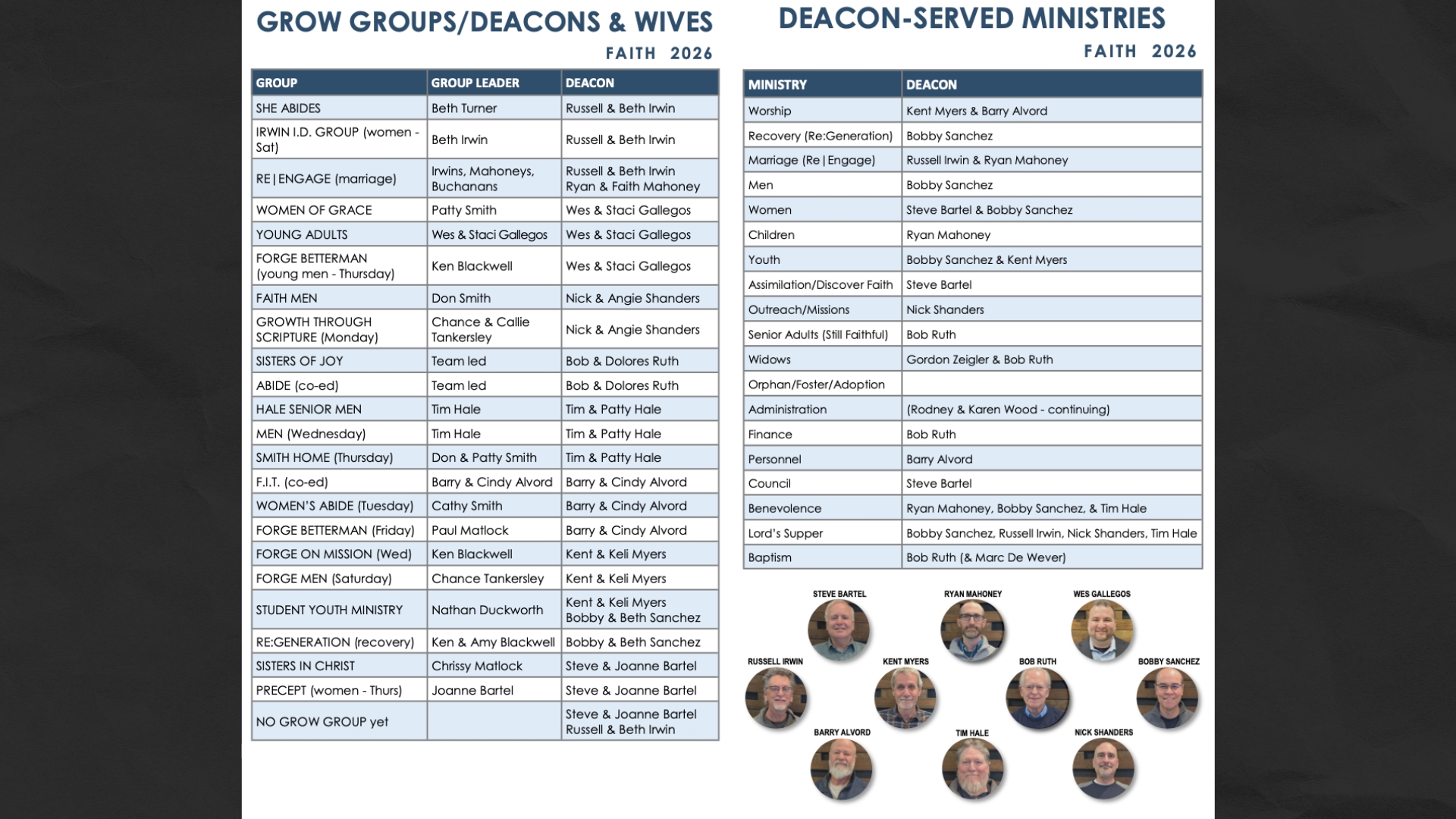 Deacons: Steve Bartel, Bobby Sanchez